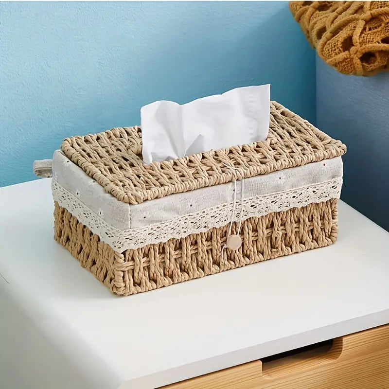 Handwoven tissue box with lid, lined tissue storage container, suitable for home