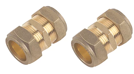 Flomasta Brass Compression Equal Couplers 22mm – 2 Pack – Durable and Reliable Plumbing Connectors